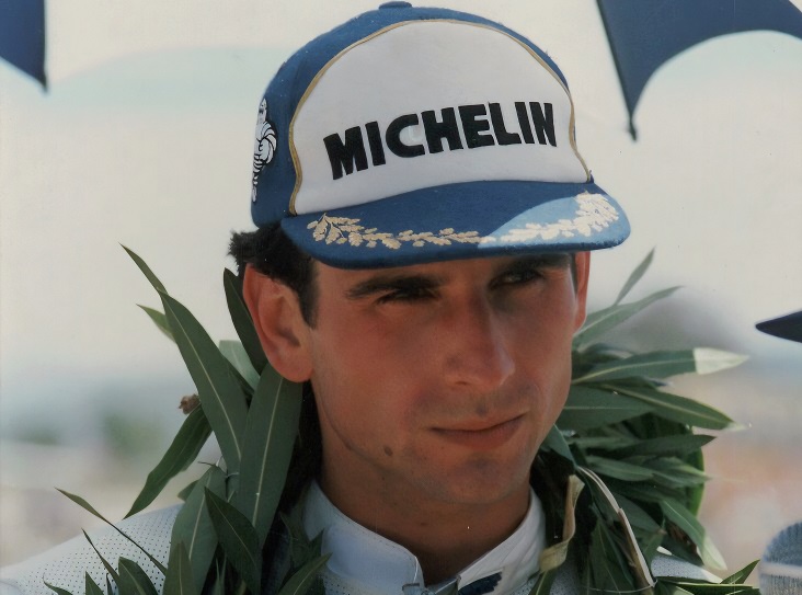 Το 1985, με Yamaha RD350, συμμετείχε σε αγώνες circuit στην κατηγορία ενιαίου αγώνα. Παρά την παντελή έλλειψη προηγούμενης αγωνιστικής εμπειρίας, κατάφερε σε περισσότερες από σαράντα συμμετοχές να ανέβει άμεσα σε βάθρα. Η εντυπωσιακή αυτή πορεία του χάρισε το προσωνύμιο «φαινόμενο», καθώς η ταχύτητα προσαρμογής και η ωριμότητα της οδήγησής του ξεχώριζαν από την πρώτη στιγμή.