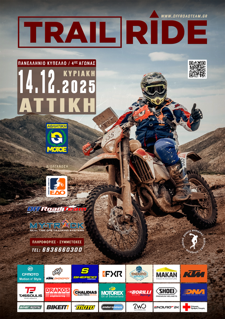 Το αθλητικό σωματείο Ομάδα Εκτός Δρόμου με αριθμό Αθλητικής Αναγνώρισης Φ.Χ.11 μετά από έγκριση της Α.ΜΟΤ.Ο.Ε διοργανώνει την 14η Δεκεμβρίου 2025 τον 4ο Αγώνα του Πανελληνίου Κυπέλλου TRAIL RIDE για το έτος 2025.